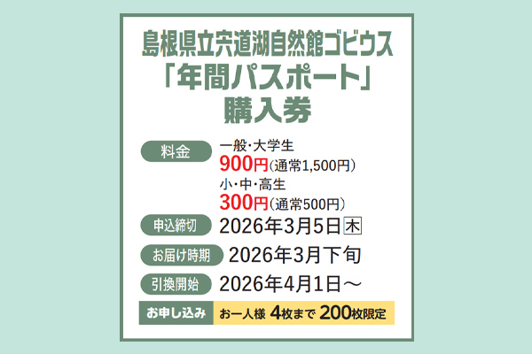島根県立宍道湖自然館ゴビウス「年間パスポート」購入券